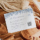 Un boda chinoiserie detalla la tarjeta del gabinete con un código QR que incluye gráficos bonito de jouy con una suave paleta de color azul polvoriento y un tipo de letra caligráfica. Perfecto para un boda de primavera o verano y se puede emparejar con cualquier cosa de la colección FLORIA para un aspecto cohesivo.
