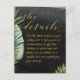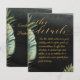 Una tarjeta de gabinete Detalles cuando necesite incluir información adicional junto con su invitación a la boda. Una elegante invitación a una boda tropical pintada con acuarela pintada con un impresionante lavabo de acuarela negra con hojas de palma verdes pintadas de manera exquisita y acentos dorados brillantes. Una animada caligrafía de guión de swash dorado anuncia los detalles de su boda.