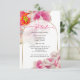 Tarjeta de gabinete boda - El texto moderno encaja bien dentro de este bello marco de arco de borde dorado blanco que muestra la fantasía subyacente de fuchsia brillante escarlata flores de peonía con bordes de oro - arte original © por WhimsicalArtwork™.
