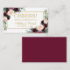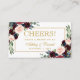 Acuarela Burgundy Floral Azul y Boda dorada Tarjeta de boleto para bebida - Guión de oro, espalda Borgoña