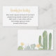Una hermosa fiesta al estilo de los libros para la baby card. Hágale saber a los clientes que están solicitando un libro en lugar de una tarjeta. Esta tarjeta de recinto temática de cactus presenta un bonito diseño de acuarela desértico en delicados tonos amarillos, polvorientos azules y verdes del desierto. Perfecto para una fiesta de boho o una moderna ducha de bebé al suroeste.