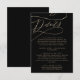 Esta romántica tarjeta de inserción de detalles negros de caligrafía dorada es perfecta para un simple boda. El moderno diseño clásico se caracteriza por sus vistosos remolinos y sus extravagantes florituras, con una magnífica y elegante tipografía de Relieve metalizado de oro con chaflán a mano en un fondo negro. Nota: Este diseño no tiene Relieve metalizado oro real. Es un gráfico de alta calidad hecho para parecer un Relieve metalizado dorado.
