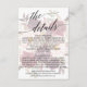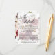 Esta elegante tarjeta caligráfica de detalles florales descoloridos es perfecta para una boda en otoño. El diseño presenta una tipografía romántica y caprichosa que domina un magnífico ramo de flores rosa, marsala y borgoña.