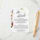 Esta elegante tarjeta de detalles floral de boda dorado caligrafía es perfecta para una boda en otoño. El diseño presenta una tipografía romántica y caprichosa, con un magnífico ramo de flores rosadas, marsala y borgoñas en la parte posterior.