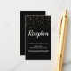 Esta tarjeta de inserción de caligrafía Gold de la recepción de la boda negra es perfecta para una recepción de bodas sencilla y elegante. El diseño es elegante, con confeti de oro falso y una caligrafía blanca simple sobre un fondo negro. Se coordina perfectamente con el Confeti de Oro sobre la Invitación a la Boda Negra.