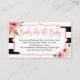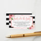 Tarjeta de solicitud de libro de Baby Shower Purpurina rosa floral con rayas blancas y negras. Añade una tarjeta a cada invitación para una ducha de bebé para iniciar una biblioteca para el bebé.