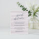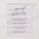 Esta pequeña tarjeta le permite compartir detalles clave con los huéspedes de su boda. Diseñadas para coincidir con nuestra colección de bodas Chiffon en Gray Lilac, las tarjetas cuentan con un fondo de lavado acuarela en tono de tonos de lavanda gris morado. ¿Se pregunta qué información incluir en un anuncio de invitación a la boda? Considere detalles como alojamiento en hotel, códigos de grupo, transporte, direcciones, información de recepción de bienvenida y url de su sitio web boda. Incluso puede cargar un mapa en el reverso usando la función Personalizar.