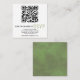 Código QR en línea tarjeta de gabinete de boda verde RSVP. Los huéspedes pueden utilizar esta tarjeta para RSVP en línea utilizando el código QR. El fondo cubre un fondo verde manchado.