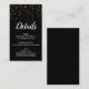 Esta tarjeta de inserción de detalles del Fiesta de Jubilación de Oro sobre Jubilación Negra es perfecta para un fiesta jubilatorio elegante o cualquier celebración. El diseño es elegante, con detalles en oro falso y una caligrafía blanca simple sobre un fondo negro. Se coordina perfectamente con el Confeti de Oro sobre la Invitación del Partido de Jubilación Negra.
