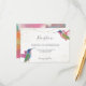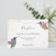 Mira estas Tarjetas de Enclosure de Recepción de Colibríes con Acuarela Floral, ideales para bodas de primavera o verano. Estas tarjetas de recepción de bodas presentan ilustraciones de acuarela de coloridos colibríes y detalles de cuerda dorada en un vibrante esquema de colores. Personaliza la tarjeta con la fecha límite de respuesta y las opciones de menú de la recepción. Los colores incluyen azul, verde, rosa, amarillo, naranja y dorado. Por favor, consulte la foto para referencia de color.