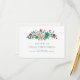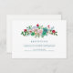 Estas tarjetas de inserción para recepción de boda modernas y elegantes presentan una corona de acuarela hecha de suculentas, rosas, flores y hojas en tonos de verde, púrpura, azul y blanco.