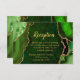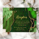 Esta elegante y glamurosa tarjeta de la recepción de la boda incluye un fondo de mármol agate verde con falsos toques purpurinas dorados. El texto combina el guión manuscrito y las fuentes sans serif modernas para un aspecto elegante y sofisticado. Esto será perfecto para otoño y bodas de invierno.