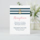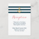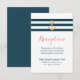 Tarjetas de Recepción de Boda con Rayas Azules y Ancla de Oro Náutico.