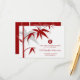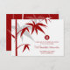 Hojas de bambú oriental en rojo y blanco con un símbolo de círculo de doble felicidad en un fondo de color sólido. Un diseño de boda moderno, simple y elegante con tema asiático que es contemporáneo y clásico.