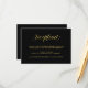 Estas elegantes tarjetas de recepción de boda tienen un fondo negro profundo y un texto de caligrafía dorada falsa moderna que dice "recepción". Esta tarjeta está diseñada para coordinar perfectamente con nuestra colección de bodas "Diamante Geométrico Moderno Minimalista".