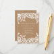 Tarjeta de acompañamiento moderna y chic para boda en blanco encaje y kraft | Conjunto de papelería para boda en blanco encaje y kraft | Invitación de boda con aspecto rústico elegante kraft con flores y hojas blancas en un estilo de encaje chic. Estilo de letra formal sofisticado, con tipografía chic clásica. Tarjeta de recepción de boda de moda. ***Tenga en cuenta: esta tarjeta no está hecha de encaje real ni de papel de cartón kraft. Si cambia la letra o el tamaño de la letra, puede alterar la impresión de su papelería. Se imprimirá tal como lo ve en su monitor. No veré su tarjeta una vez que la ordene, y Zazzle NO editará nada (errores tipográficos, alineación, etc.).