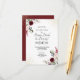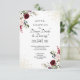 Tarjeta de acompañamiento para recepción de boda con hoja de oro floral de Borgoña