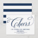 Tarjeta de recepción de boda elegante y moderna con letra de caligrafía caprichosa en patrón de rayas y azul marino. Esta es una parte de un conjunto de boda. Están disponibles otros colores y artículos coincidentes.