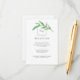 Esta tarjeta de información de recepción de boda elegante cuenta con hojas de acuarela verdes sobre un fondo blanco limpio. El conjunto completo de suite de boda a juego está disponible aquí en nuestra tienda.