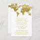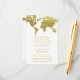La tarjeta de información de la boda cuenta con un diseño de borde de mapa del mundo. Esquema de color de lámina de oro falso y blanco elegante.