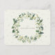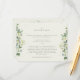 Una tarjeta de recepción de boda plana con envoltura de crema para recepciones que se celebran en un lugar diferente al de la ceremonia de boda. La tarjeta presenta un borde de bayas de nieve y eucalipto pintados a mano en la parte frontal y una corona en la parte posterior de la tarjeta. Todo el texto es totalmente editable y los puntos dispersos en la parte frontal y posterior se pueden eliminar antes de realizar el pedido si lo prefiere. Esta tarjeta está disponible con diseños botánicos alternativos, en formato vertical y en diferentes colores. Por favor, revise la Colección en mi tienda para ver todas las opciones y artículos coordinados.