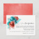 Tarjetas de recepción de boda de rosas de coral y turquesa rústico y flores tropicales diseñadas para ser personalizadas rápida y fácilmente en español.