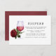 Tarjeta de inclusión de recepción de boda con cata de vino con tema de rosa vintage antigua en acentos de borgoña - vino tinto, blanco marfil y oro rojizo.