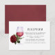 Tarjeta de cerramiento de recepción de boda de cata de vinos con tema de rosa vintage antigua con acentos de borgoña - vino tinto, blanco marfil y oro rojizo.