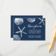 Tarjetas de Recepción de Boda de Tema de Playa Azul Marino con Conchas.