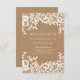 Tarjeta moderna de inclusión para boda formal en encaje blanco y kraft | Conjunto de papelería para boda en encaje blanco y kraft | Invitación de boda con aspecto rústico elegante y flores y hojas blancas en un estilo de encaje chic. Estilo de letra formal sofisticado, con tipografía chic clásica. Tarjeta de recepción de boda de moda. ***POR FAVOR TENGA EN CUENTA: Esta tarjeta no está hecha de encaje real ni de papel de cartón kraft. Si cambia la letra o el tamaño de la letra, puede alterar la forma en que se imprime su papelería. Se imprimirá tal como lo ve en su monitor. No veré su tarjeta una vez que la ordene, y Zazzle NO editará nada (errores tipográficos, alineación, etc.).