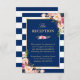 Tarjeta de Recepción de Boda de Flores Elegantes y Rayas Azules Marinos.