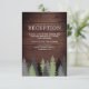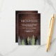 Carta rústica con hermosos pinos con tipografía moderna sobre un fondo de madera de granero.