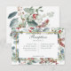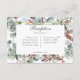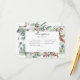 Este diseño presenta pinares, eucaliptos, bayas rojas y azules y otros follajes verdes, rodeando un delgado marco de color oro falso y una caja de texto blanca. Es parte de la suite Boda de Navidades de invierno de tarjetas creadas por Simply Farmhouse Press.