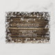 Esta colección de bodas de invierno evoca la imagen de una ventana escarchada en un frío día de invierno nevado. El fondo presenta una madera de granero desgastada mientras que carámbanos cristalizados y copos de nieve bordean la tarjeta. Perfecto para una boda de invierno encantadora.