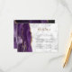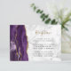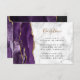 El borde izquierdo de esta elegante tarjeta de recepción de boda moderna presenta un borde de ágata de acuarela púrpura recortado con brillo dorado falso. El título aparece en escritura dorada a mano, con texto personalizable debajo en fuente de cobre negro sobre un fondo de mármol blanco y gris. La parte posterior presenta un diseño de ágata púrpura y dorada coincidente.