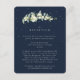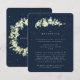 Una tarjeta de sobre cerrado de color azul marino oscuro para recepciones de boda que se celebran en un lugar diferente al de la ceremonia de boda. La tarjeta presenta un tallo elegante de snowberries y eucalipto pintados a mano en la parte frontal y una corona en la parte posterior de la tarjeta. Todo el texto es totalmente editable y los puntos dispersos en la parte frontal y posterior se pueden eliminar antes de realizar el pedido si lo prefiere. Esta tarjeta está disponible con diseños botánicos alternativos, en formato horizontal y en diferentes colores. Por favor, revise la Colección en mi tienda para ver todas las opciones y artículos coordinados.