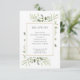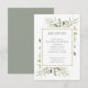 Con hojas delicadas pintadas a la acuarela, esta tarjeta de recepción de boda botánica y elegante se puede personalizar con la información de su día especial, con un fondo de salvia plateada en el reverso. Diseñada por Thisisnotme©