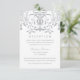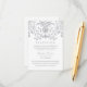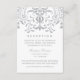 La tarjeta de recepción de boda con inspiración vintage presenta un diseño de borde decorativo ornamentado con un brillo metálico plateado / gris y texto personalizado que se puede personalizar para la celebración.