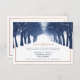 Personalice esta encantadora y moderna Tarjeta de Recepción de Boda de Invierno Horizontal con una imagen original de una Avenida de Árboles de Invierno en Azul Marino diseñada con un marco de falso cobre y una combinación de color blanco. Esta versión tiene nombres en color cobre. Tenga en cuenta que el cobre en este diseño es una impresión en color y no es una lámina metálica.