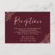 Tarjeta de recepción elegante de papel de aluminio floral falso Rose Gold y Burgundy para una fiesta de postboda. Esta tarjeta de recepción de boda de color rosa y Marsala se puede personalizar para incluir su mensaje y la dirección de la fiesta de recepción. La tarjeta de recepción es parte de la colección de bodas Rose Gold y Burgundy. Si desea artículos personalizados adicionales, por favor contacte al diseñador.