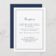 La elegante tarjeta de respuesta de la recepción de la boda presenta una hermosa escritura y letra en azul marino romántico sobre un fondo blanco crujiente. La parte posterior de la tarjeta de respuesta es azul sólido. Para obtener resultados óptimos, reemplace los detalles de la plantilla con sus propios detalles. Capitalice y deje espacios donde se indique para obtener los mejores resultados. Utilice la función de mensaje o envíe un correo electrónico a invitationsuites@gmail.com con preguntas o solicitudes de color personalizado. No dude en contactarme en invitationsuites@gmail.com si tiene preguntas sobre este o cualquiera de nuestros diseños.