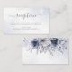 Tarjeta de recepción de boda floral moderna y elegante con flores de acuarela azul polvo y caligrafía manuscrita.