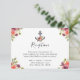 Tarjeta de Recepción de Boda Floral Ancla Náutica Azul Marino.