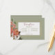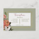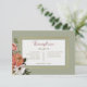 Este bonito diseño floral está decorado con un ramo de melocotón, rosa y blanco sobre un fondo verde sabio y polvoriento con un marco dorado. Forma parte de la colección Peach Mimosa Blooms Floral Boda Suite de tarjetas creadas por Simply Farmhouse Press.
