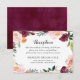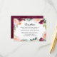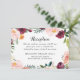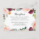Agregue un toque final pulido a su suite con esta tarjeta de inclusión de boda que presenta tipografía de encabezado “Recepción” y un exuberante marco floral de acuarela en borgoña, rosa y vegetación. El diseño limpio mantiene los detalles de tiempo y ubicación fáciles de leer. Perfecto como inserto de recepción para bodas de otoño, jardín o viñedo.