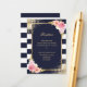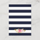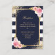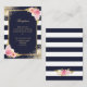 Elegante tarjeta de recepción de bodas floridas a rayas azules y blancas con flores color agua rosa y verde dorado. Elementos coincidentes disponibles.