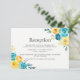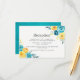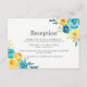 Tarjetas de recepción de boda floral de acuarela turquesa y amarillo - azul verdoso y limón con acentos de coral con flores y follaje de acuarela.