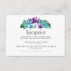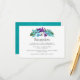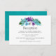 Tarjetas de recepción de boda con hojas tropicales y orquídeas en acuarela colorida con lavado de acuarela azul turquesa al revés.