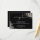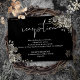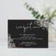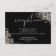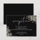 Esta tarjeta de detalles de recepción de boda floral gótica con rosas elegantes se puede personalizar con su información en tipografía blanca chic sobre un fondo negro. Diseñado por Thisisnotme©