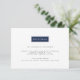 Elegantes, chic y modernos, estas tarjetas de inserción para recepción de boda ultra modernas presentan "Recepción" en un elemento rectangular que se puede personalizar con el clic de un botón para que coincida con los colores de tu boda. Agrega los detalles de tu recepción, como horario, lugar y dirección, y luego ajusta el color a tu preferencia utilizando las instrucciones fáciles a continuación. Las tarjetas tienen un reverso con un patrón opcional de clave griega moderna. Se muestra en azul clásico y blanco.
